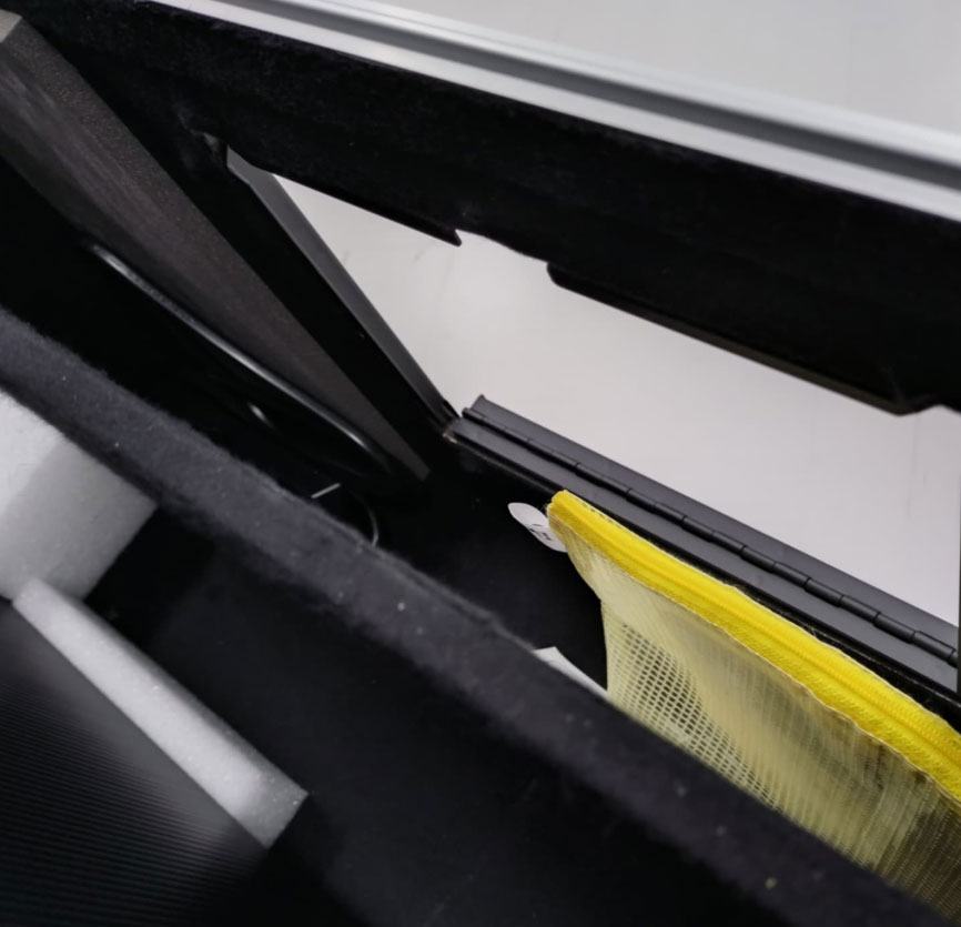 ・小物収納内箱部にドアを配し、フタを閉じた状態でも中身の確認が可能
